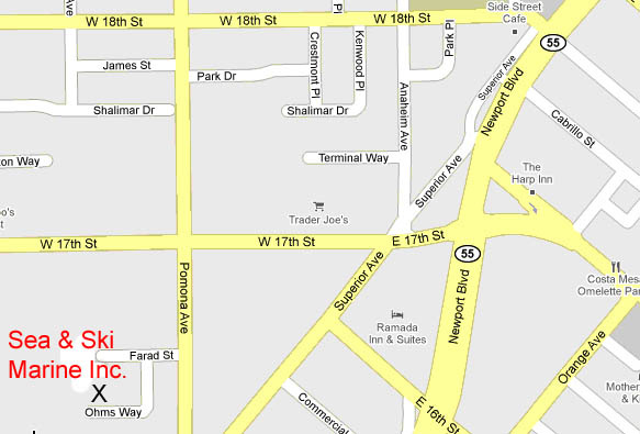Sea & Ski Marine is located minutes from Newport Harbor at the end of the 55 Freeway. | ||